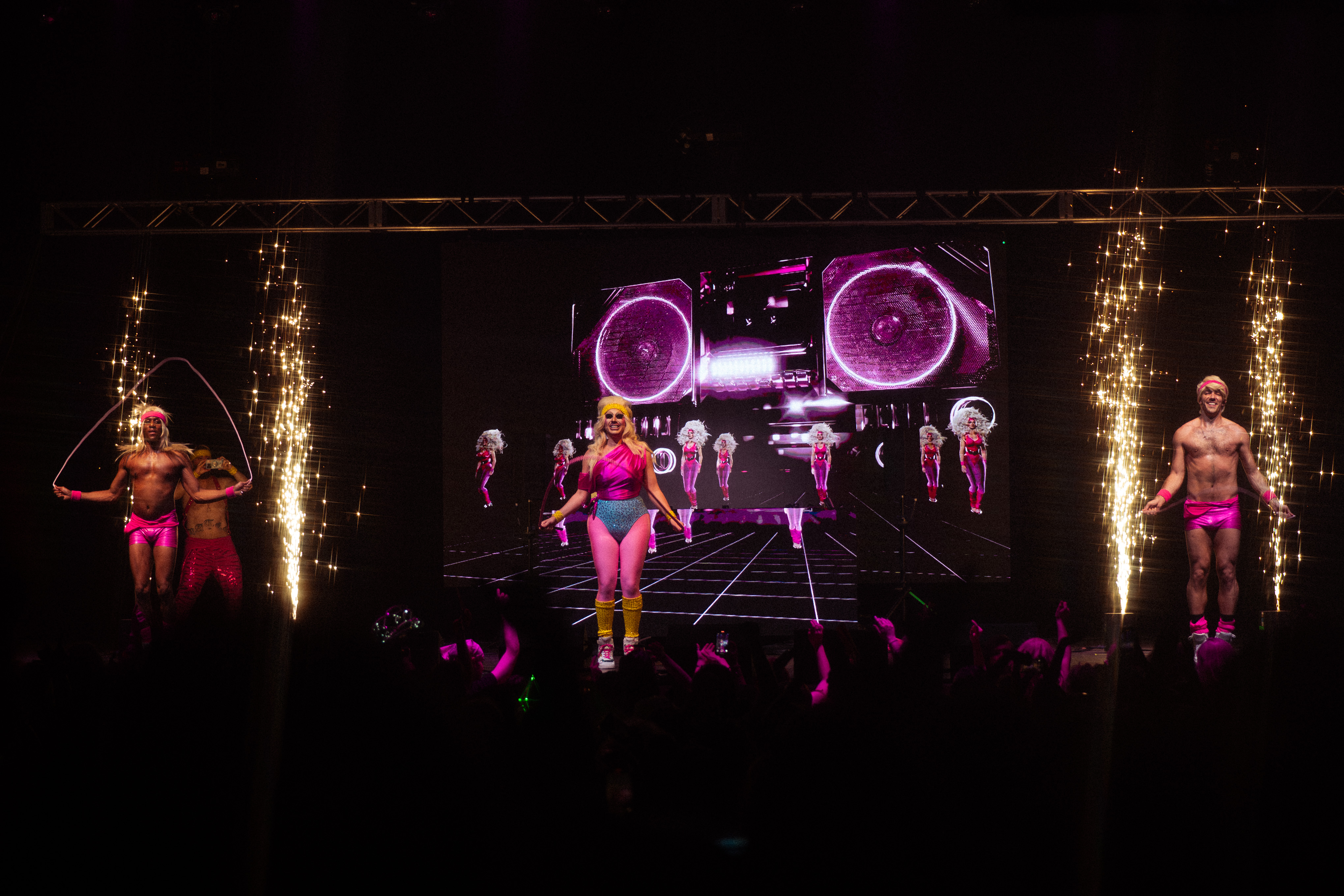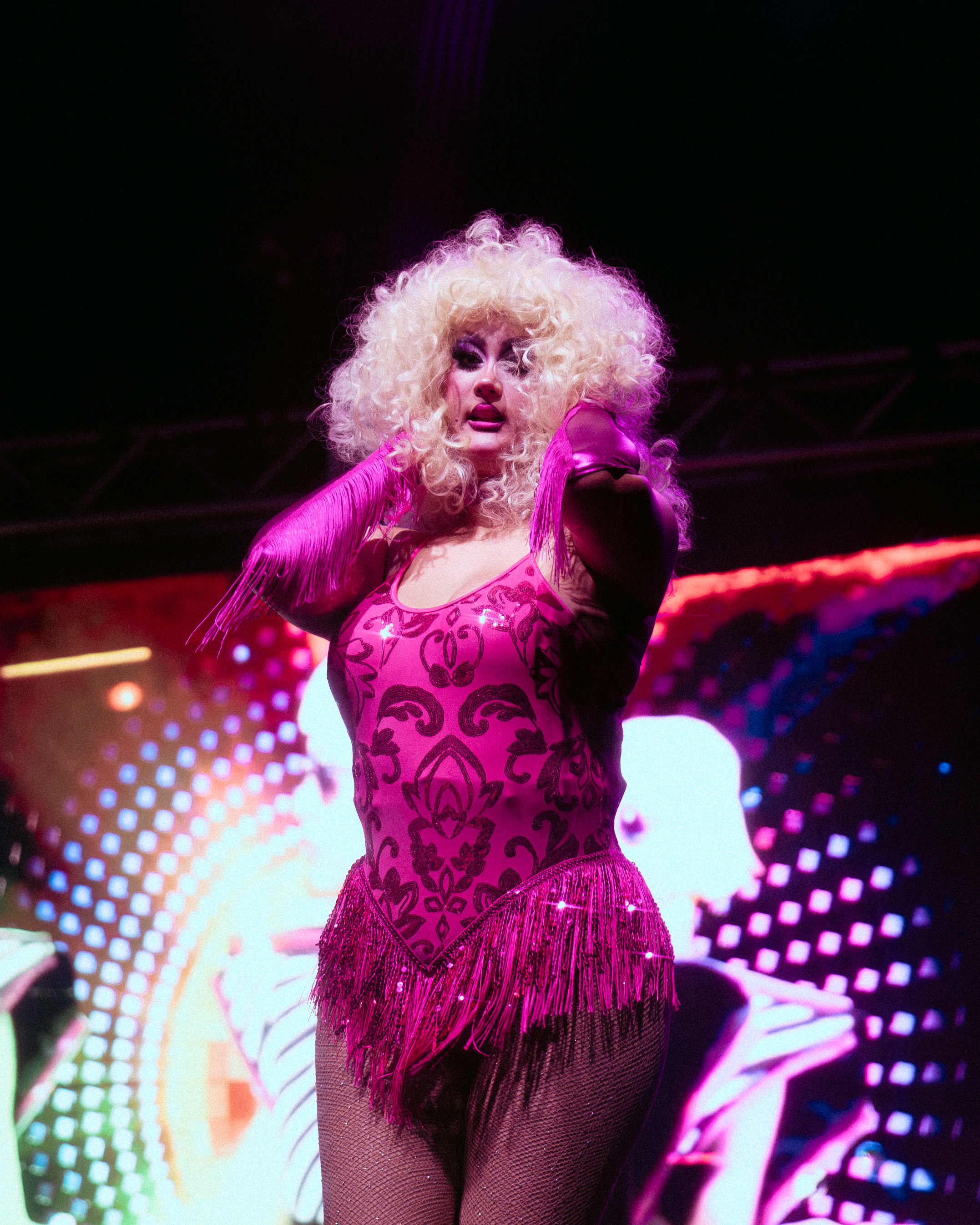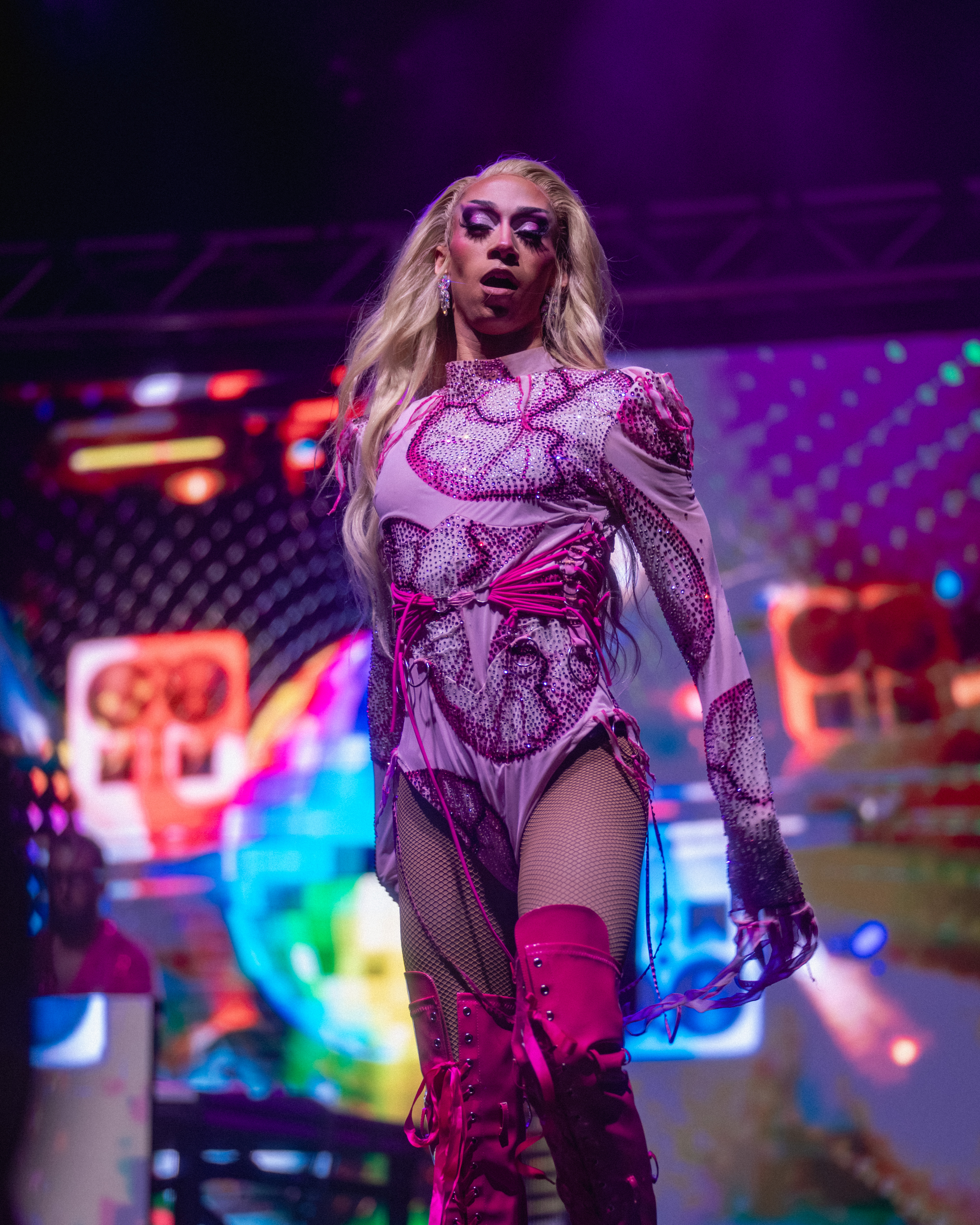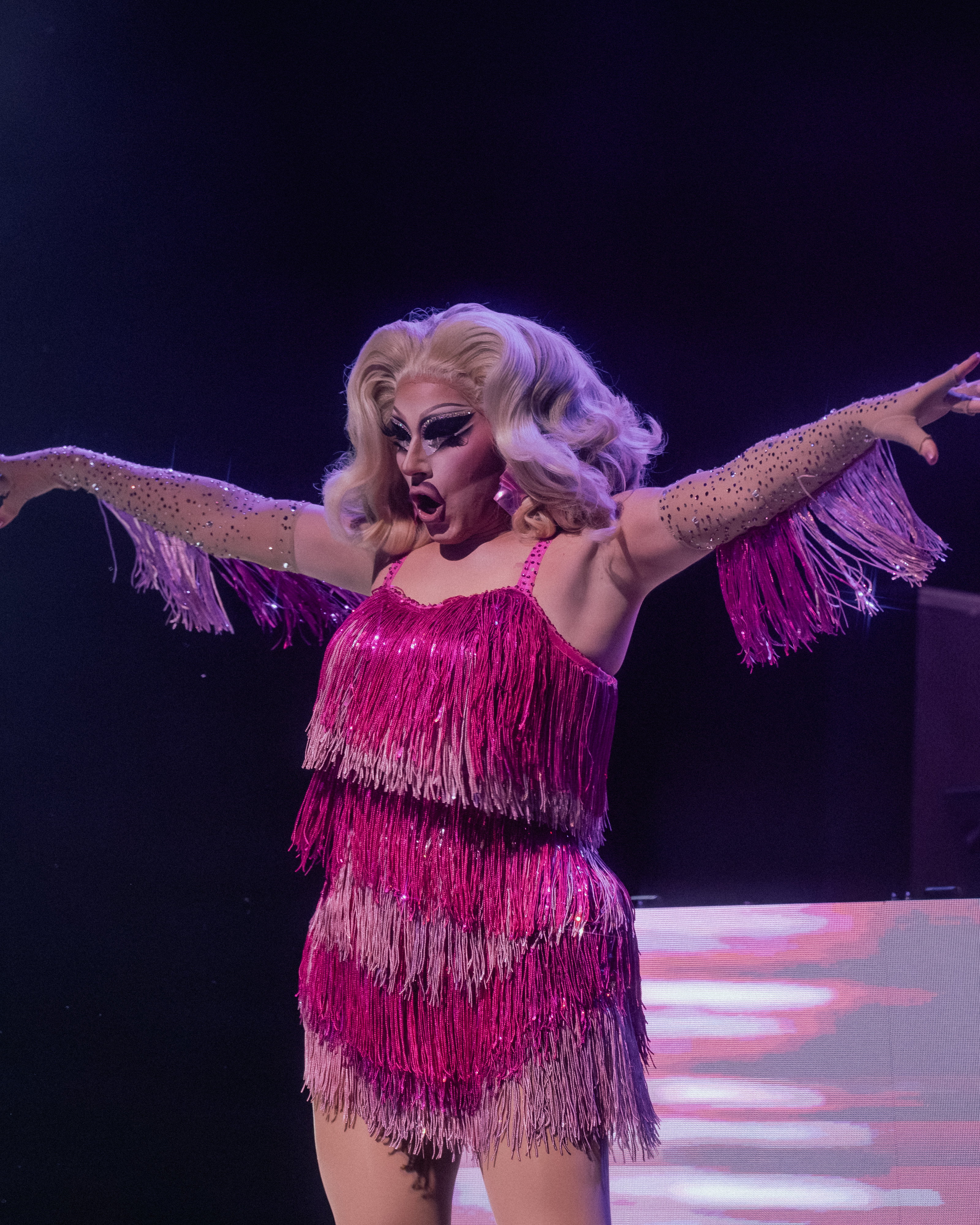 Next was DJ Mateo Segade for his set. At this point in the show, local drag queens and LGBTQ+ performers joined Segade to dance on stage and continue getting the audience energized. My favorite local drag queen is Kaydence McQueen, and it was one of the highlights of my night seeing her come out onstage to perform.